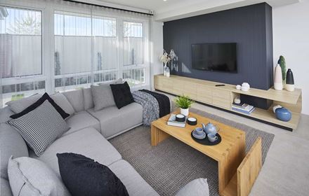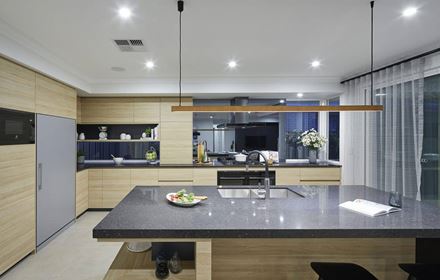 The design features a Chef’s kitchen with wide island bench for easy entertaining, adjacent laundry and scullery, both with an abundance of storage throughout.