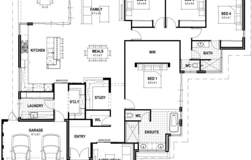 This luxurious four bedroom home design features two spacious bathrooms, with the expansive master suite boasting a deluxe open-plan ensuite with free-standing bath and huge walk-in robe.